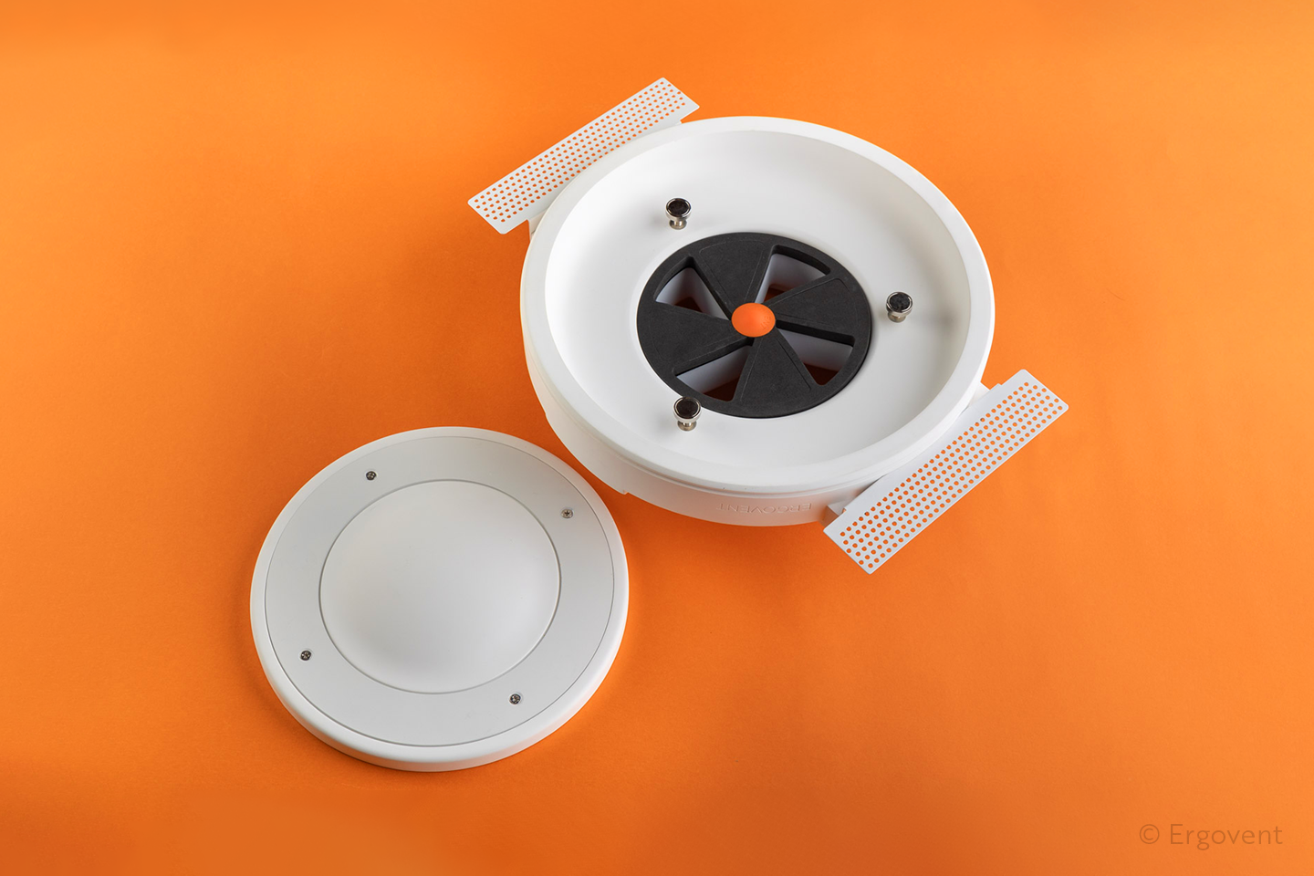 ERGOVENT gipsinis korpusas tvirtas ir vienalytis. Tvirtinimo elementai įlieti į korpusą, niekas negręžiama ir niekas prie jo neklijuojama. Liejimo metu pašalinami menkiausi oro burbuliukai, gipso paviršius lygus ir baltas kaip sniegas.