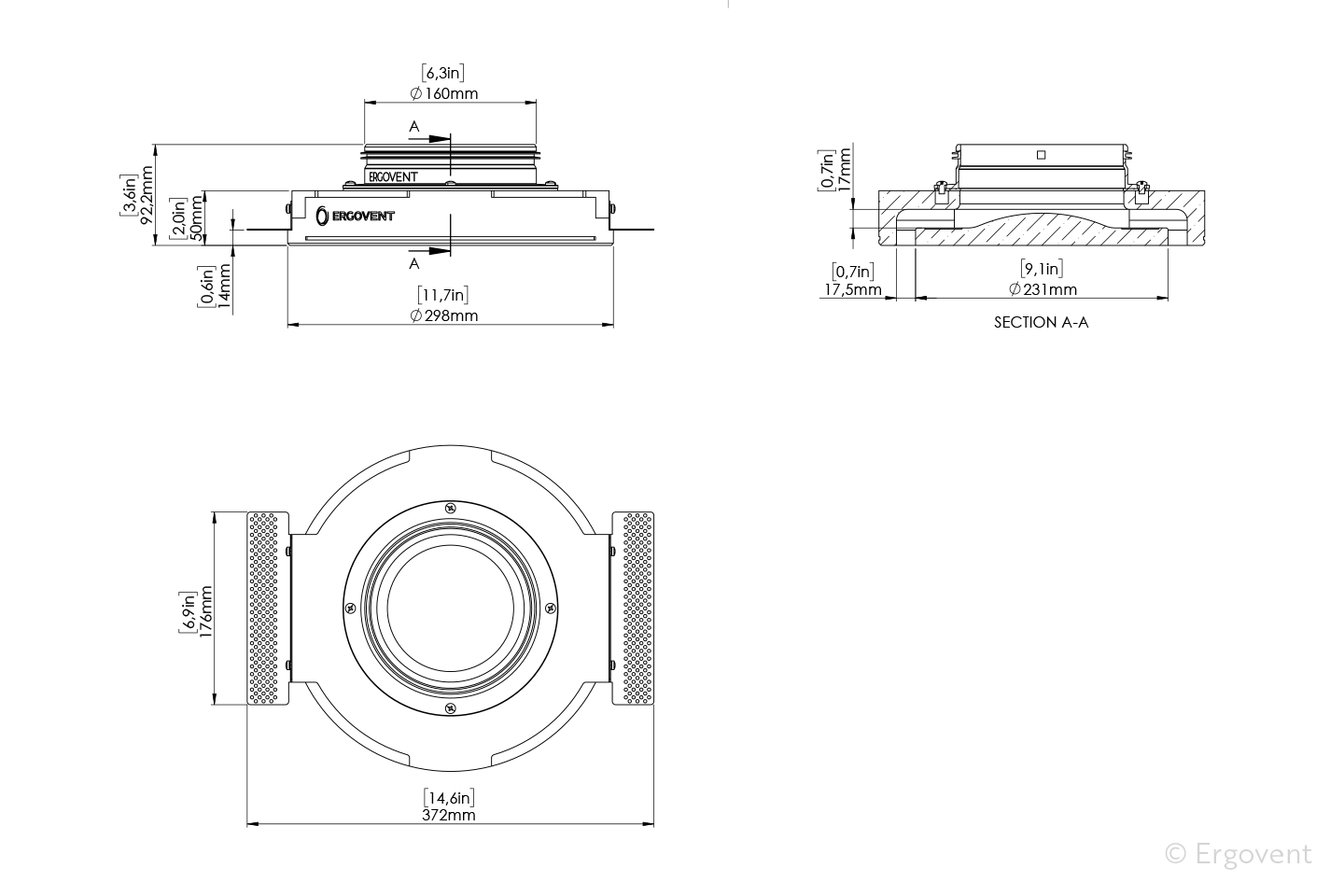 ERGOVENT gipsinis korpusas tvirtas ir vienalytis. Tvirtinimo elementai įlieti į korpusą, niekas negręžiama ir niekas prie jo neklijuojama. Liejimo metu pašalinami menkiausi oro burbuliukai, gipso paviršius lygus ir baltas kaip sniegas.