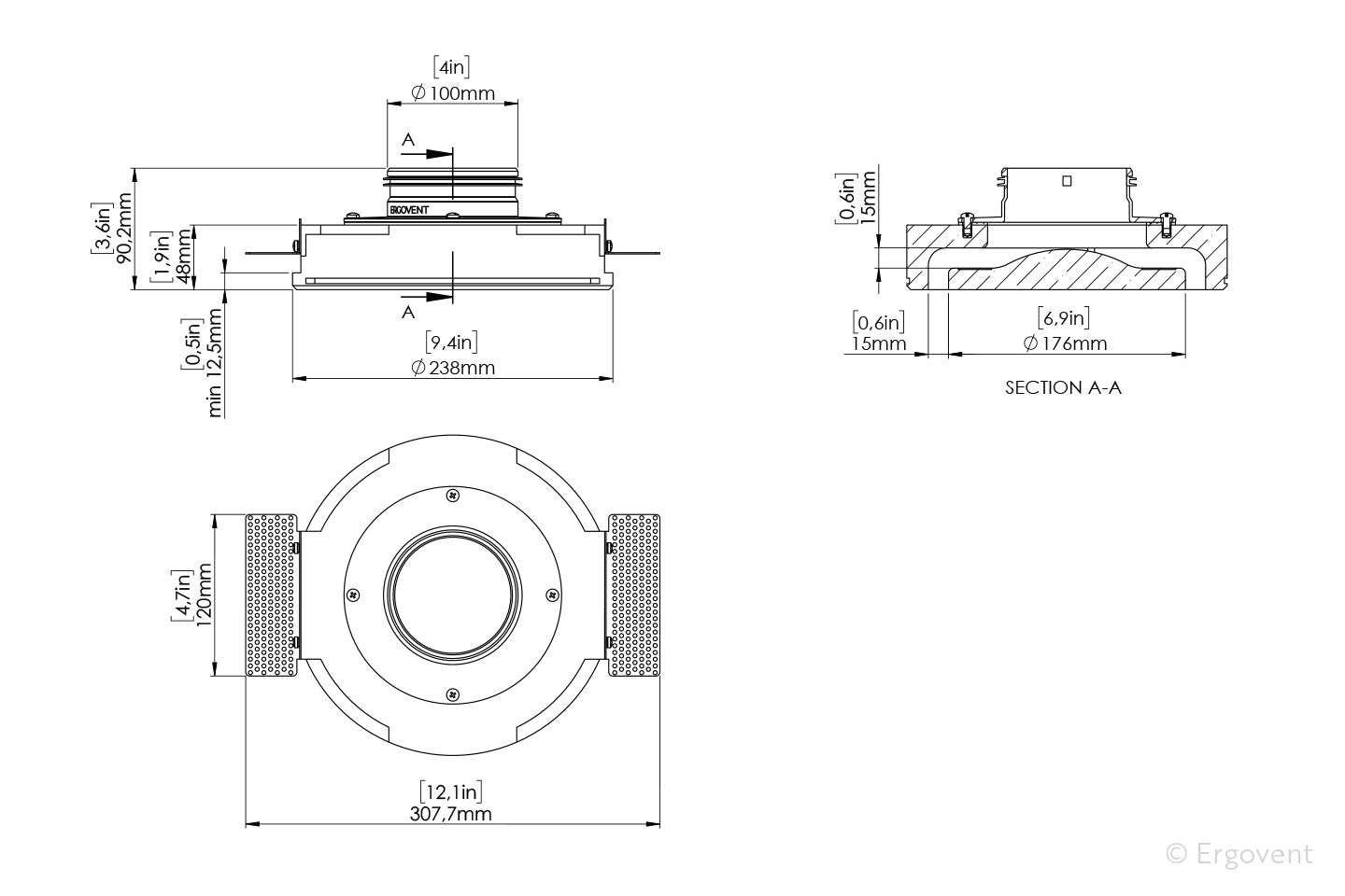 ERGOVENT gipsinis korpusas tvirtas ir vienalytis. Tvirtinimo elementai įlieti į korpusą, niekas negręžiama ir niekas prie jo neklijuojama. Liejimo metu pašalinami menkiausi oro burbuliukai, gipso paviršius lygus ir baltas kaip sniegas.