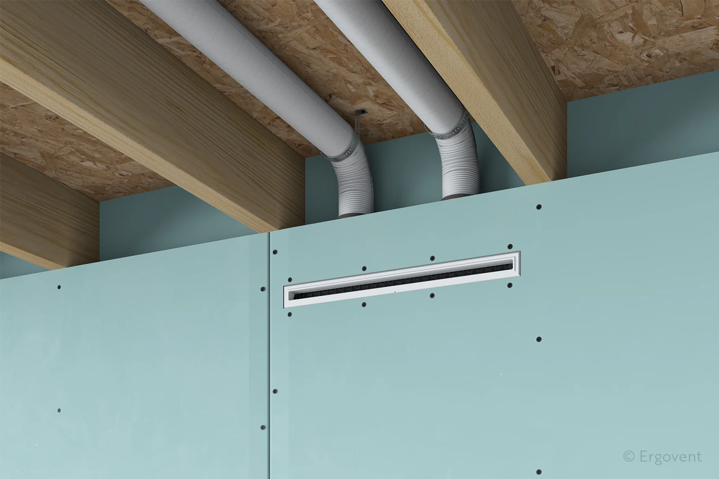 DĖMESIO! Šio difuzoriaus sumontavimui užtenka vos 12 cm erdvės, todėl jis idealiai tinka ten, kur norite maksimaliai taupyti erdvę po gipso lubomis. Taip pat, idealiai tinka montuoti į pertvarines 12 cm storio sienas.