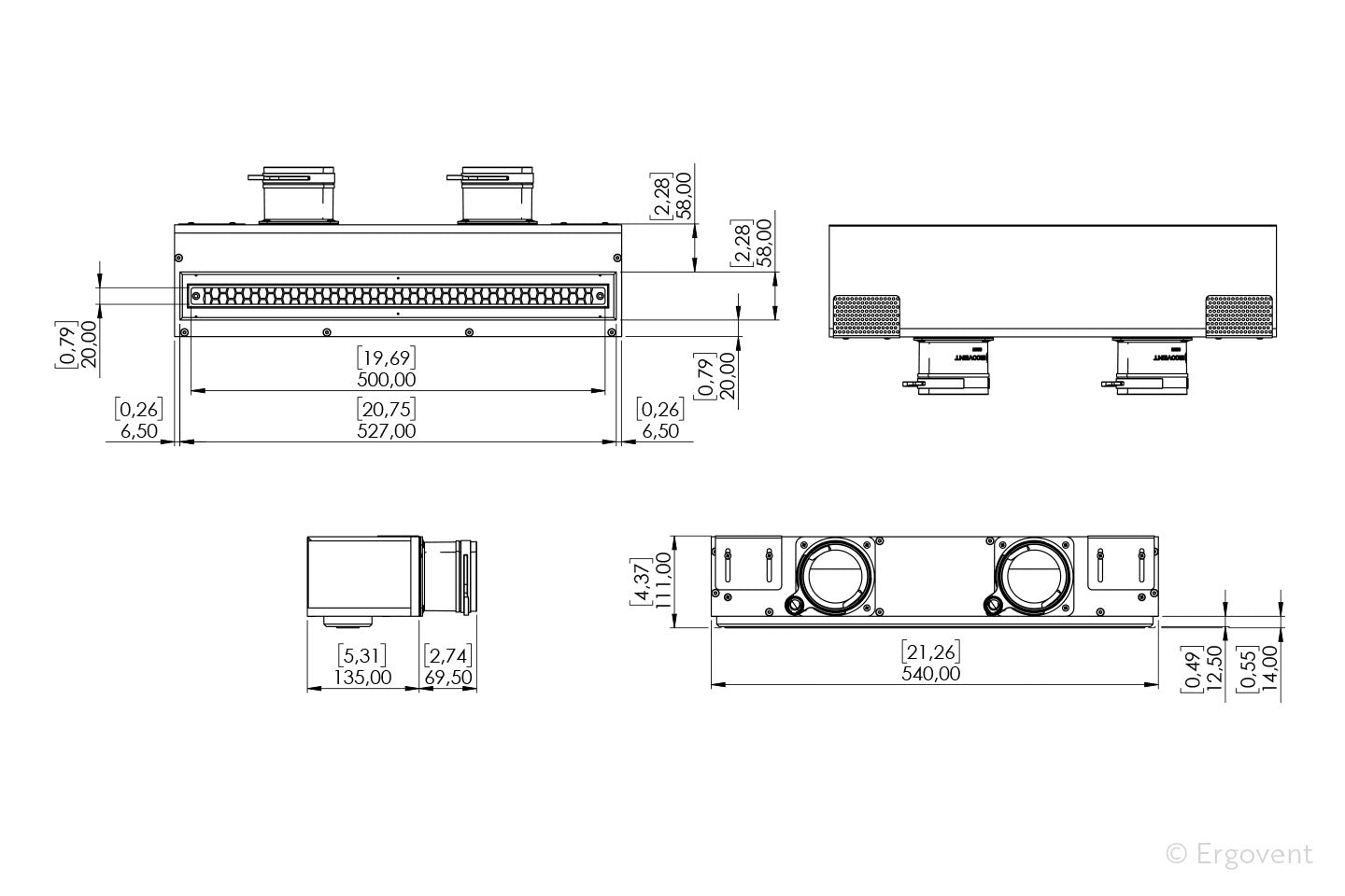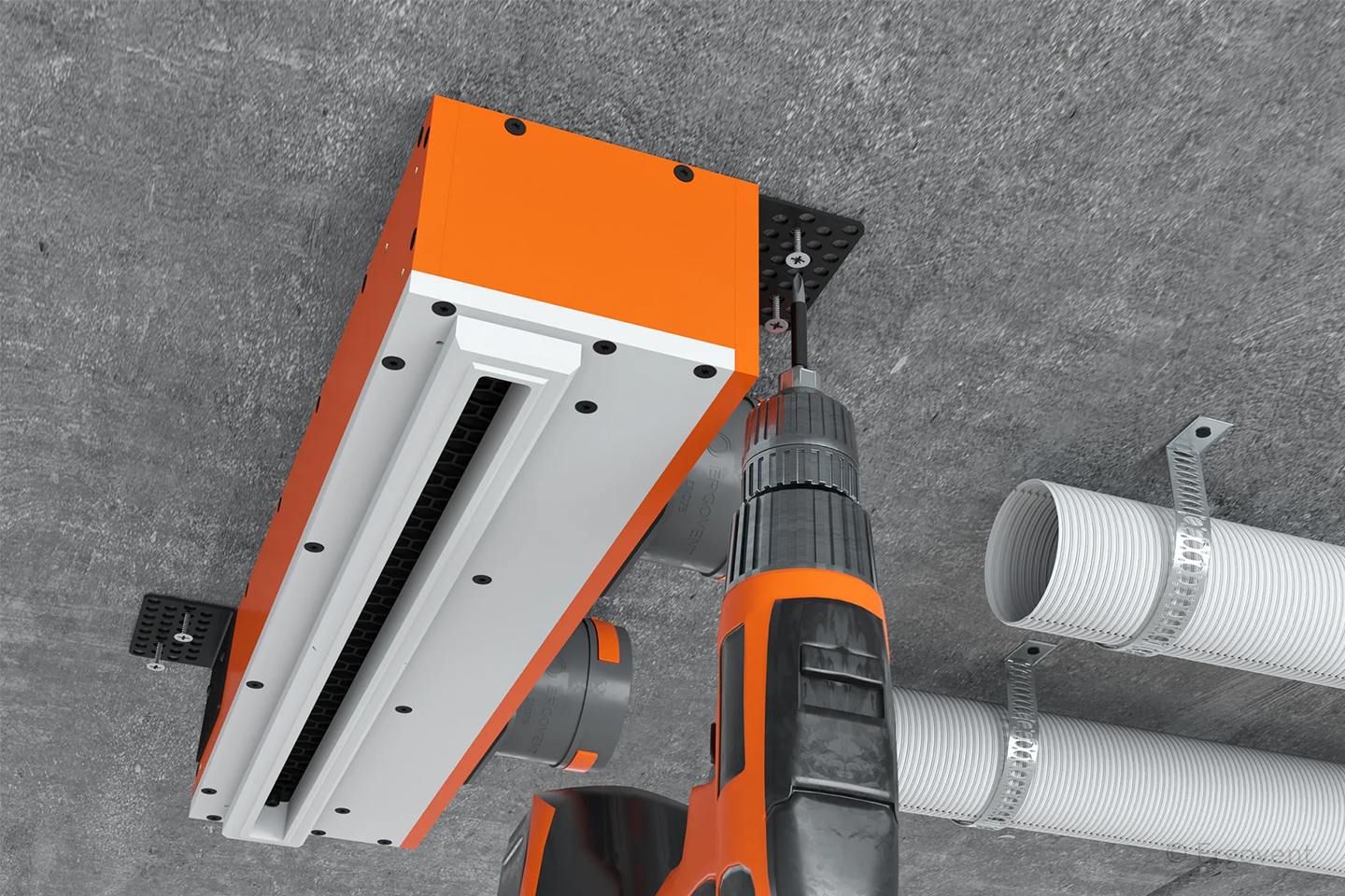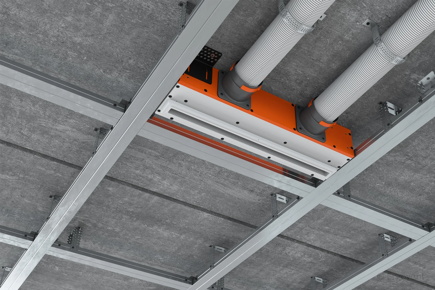LINEO 500 SINGLE modelio difuzorius turi patogius metalinius laikiklius, kurie suteikia keletą skirtingų montavimo būdų: prie betono lubų arba tarp medinių sienų karkasų. Montavimas itin greitas ir patogus. O svarbiausiai - šio difuzoriaus sumontavimui užtenka vos 12 cm erdvės.